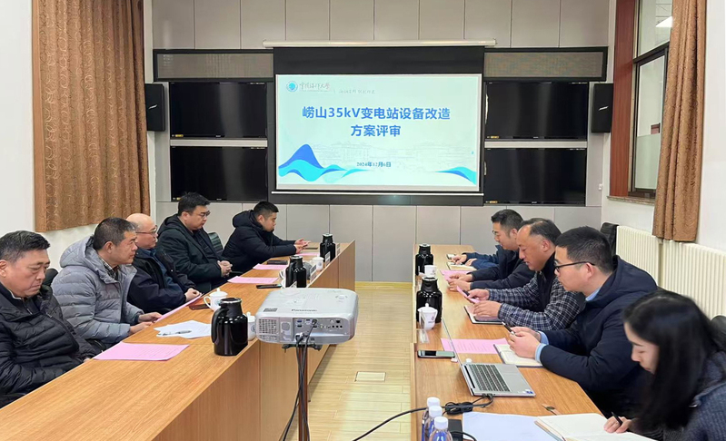 与会专家在听取崂山校区变配电现状及35kV变电站设备升级改造方案汇报并查看现场后,结合自身专业知识和实践经验对方案进行了深入研讨,针对改造项目的合理性、可行性、安全性等进行论证,提出了建设性的建议,并形成书面意见。