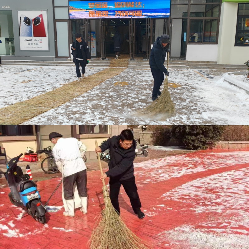 (相关后勤服务保障场所的工作人员也同时主动做好门前积雪清扫和室内防滑工作,保障师生出入安全。)