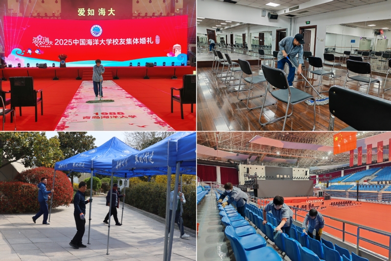 能源守护时刻在线,点亮温暖幸福之光。后勤以“零差错、稳供应”为目标,织密电力“安全网”:开展崂山校区变电站、电缆线路等设施地毯式巡查巡检工作,检修校园景观灯、步行道灯等;优化电力分配方案,确保体育馆、北海苑食堂双回路供电;部署160kW应急发电机,通过物联网传感器实时采集电压、电流、温度数据,实现“秒级响应”。适当延长崂山校区供暖时间,确保婚礼当天室内温度适宜。