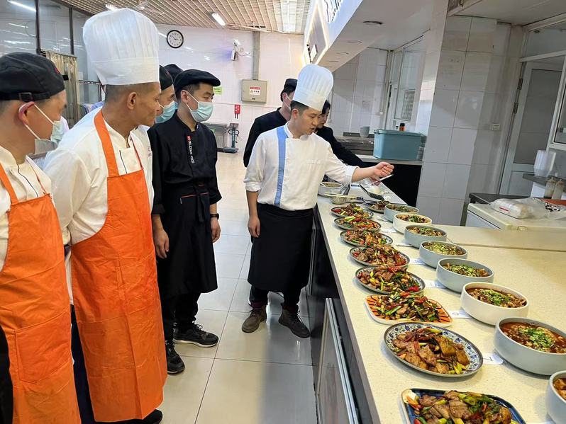 本期培训共设8期课程,由青岛技师学院专业讲师担任授课教师,涵盖中式烹饪、中式面点等内容,设置理论教学、技能实操和现场点评环节,旨在通过系统化、专业化指导,夯实员工技能基础。在理论教学环节,讲师详细讲解了菜品制作中食材选配、刀工技法、火候调控、调味比例等核心技能,并结合实际案例剖析制作难点。在技能实操和现场点评环节,讲师指导参训员工按照标准化流程制作菜品,进行点评,指出改进方向。参训员工于显涛说:“此次培训内容紧贴食堂工作实际需求,通过系统学习既巩固了传统烹饪技艺,又掌握了创新菜品研发思路,对提高日常工作效率、优化菜品质量具有重要指导意义。”