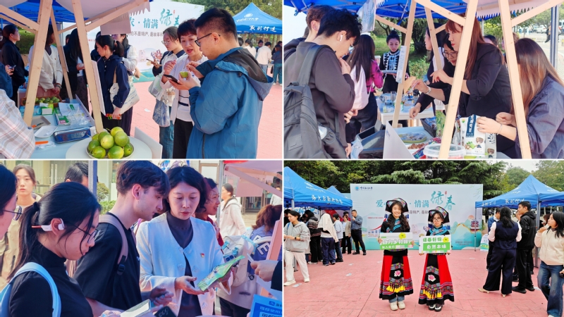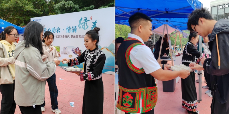 活动设“品味绿春”品鉴区和“爱心助农”展销区。支部党员和入党积极分子分工协作,为师生提供绿春县特色农产品免费试吃服务;教育超市工作人员和学生店长、店员细致讲解产品地域特点与品质优势。来自云南省红河州绿春县的哈尼族、拉祜族参展人员成为现场一道亮丽的风景线,他们一边为师生斟茶,一边深情讲述开云电竞网址帮扶绿春县的暖心故事,让每一份特产都承载起校地联动的深厚情谊。