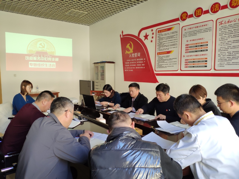 本站讯  根据学校和后勤党委关于“不忘初心、牢记使命”主题教育的安排,12月6日下午,饮食服务中心党支部在中心党团活动室召开了2019年度专题组织生活会。会议由党支部书记李俊明同志主持,支部全体党员参加了会议,后勤党委成员李永贵同志以普通党员身份参加了会议。