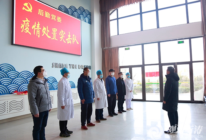 突击队成立仪式上,后勤党委书记崔越峰作动员讲话,他希望队员们充分认清突击队工作的重要意义,一切行动听指挥,将疫情防控责任落实到人,同时切实做好自身防护工作。全体党员面对党旗庄严宣誓,并表示,“战‘疫’没有旁观者,防疫工作定当竭尽全力,不辱使命、不负期望。”