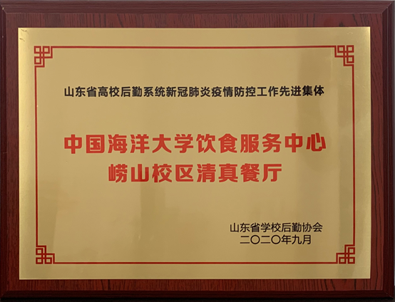 2020年9月崂山校区清真餐厅被评为山东省高校后勤系统新冠肺炎疫情防控工作先进集体