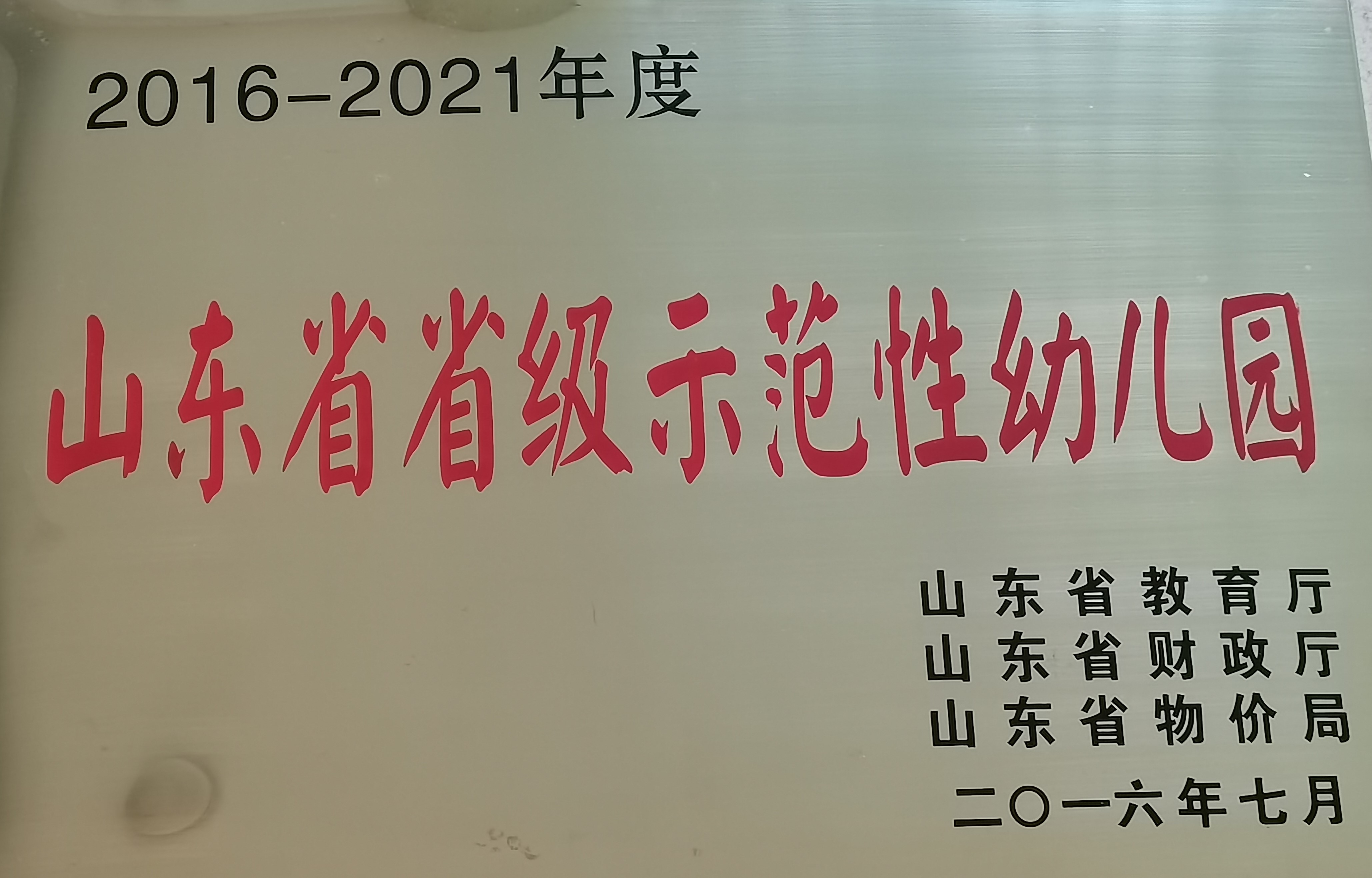 2016年7月幼儿园被评为山东省示范幼儿园