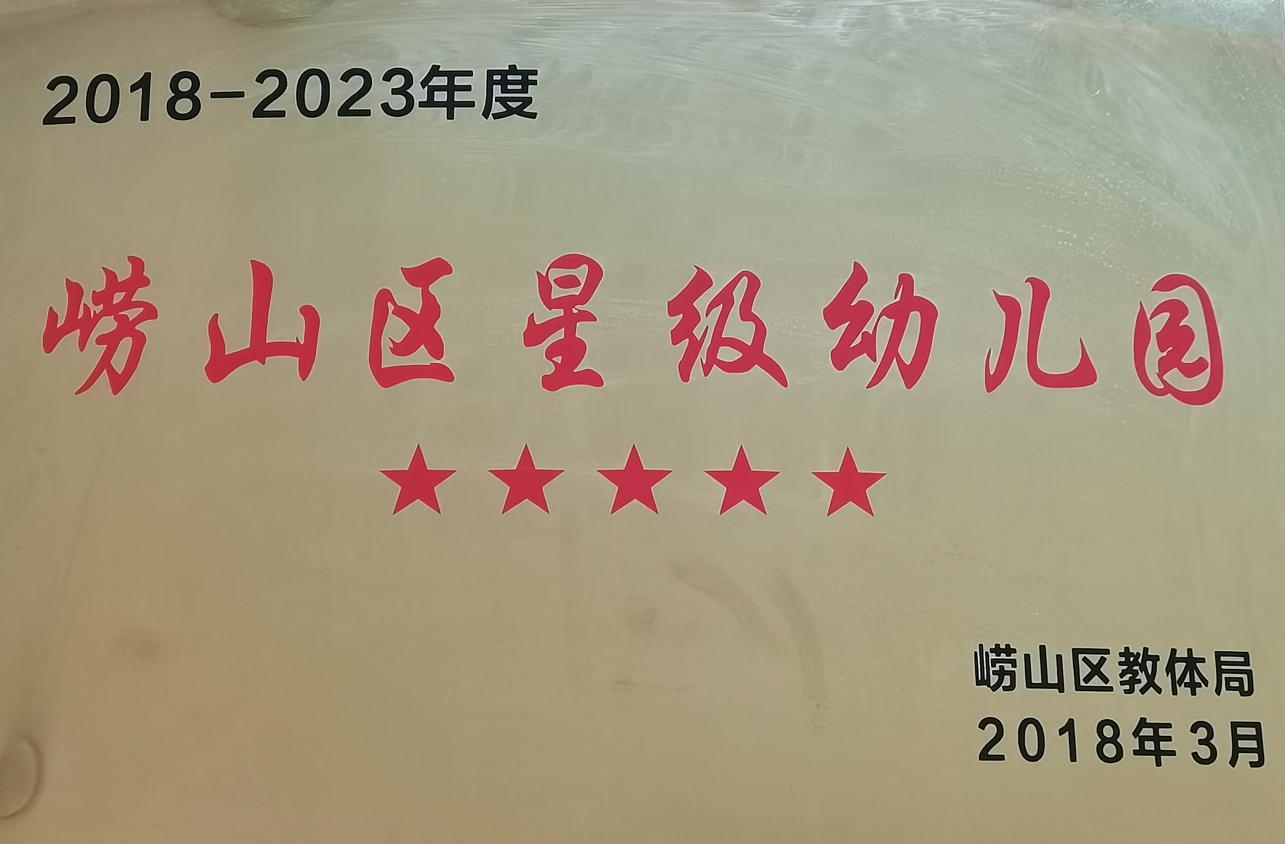2018年3月幼儿园被评为崂山区星级幼儿园