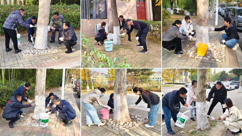 活动现场一片热火朝天的劳动景象,大家分工协作,默契配合,有的负责搅拌涂白剂,有的手拿刷子将白色的保护层均匀涂抹到树干上。经过两个小时的辛勤劳作,校园主干道的树木都穿上了整齐划一的“白色新衣”,成为冬日校园一道亮丽而温暖的风景线。