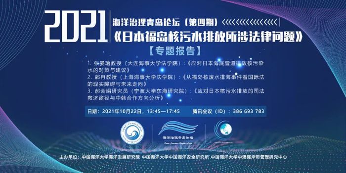 学术研讨会 | 海洋治理青岛论坛(第四期)——日本福岛核污水排放所涉法律问题