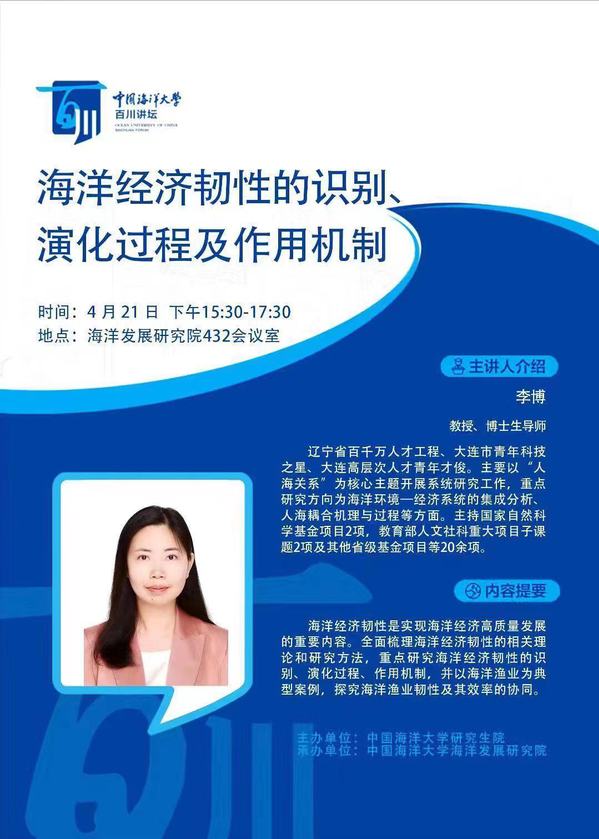 百川讲坛 | 海洋经济韧性的识别、演化过程及作用机制