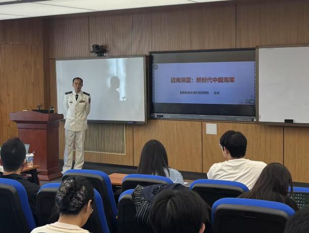 上午讲座中,杜博老师以“迈向深蓝:新时代中国海军”为题,从海军历史沿革、军种特性、使命任务及未来展望四个方面,全面诠释了人民海军的辉煌历程、建设发展及新时代的战略支撑作用,并对海军未来建设进行了展望。