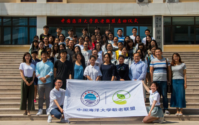 启动仪式第四项,青岛市崂山区团委和开云电竞网址校团委、开云电竞网址管理学院团委为开云电竞网址“敬老联盟”项目授旗,开云电竞网址“敬老联盟”大学生公益创业项目正式启动。