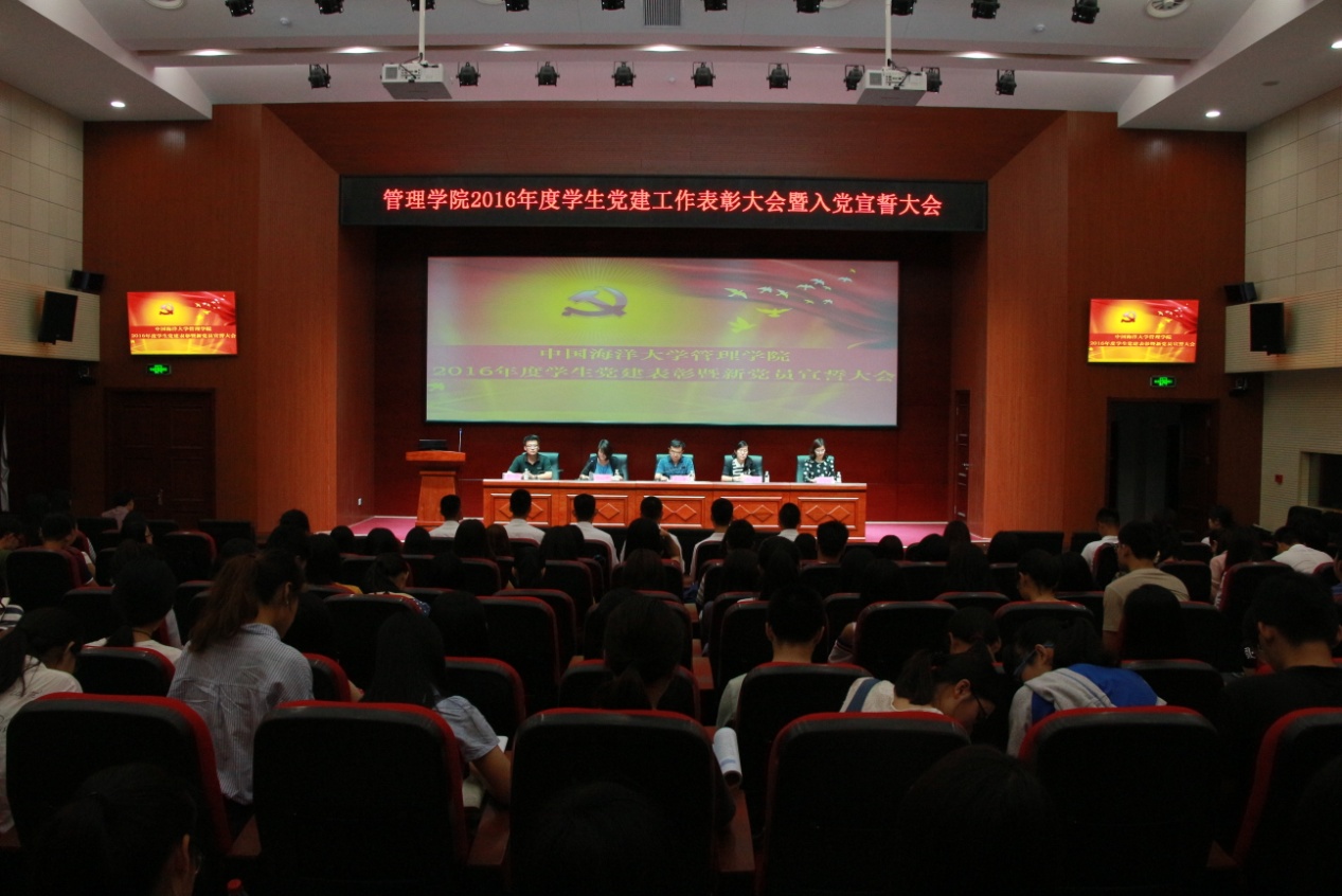 本站讯 6月22日下午,管理学院2016年度学生党建工作表彰大会暨入党宣誓大会在管理学院三楼学术报告厅顺利举行,学院党委书记王正林,党委副书记许玲玲,团委书记薛清元,团委副书记王圣丹,团委副书记李凯参加了本次会议。