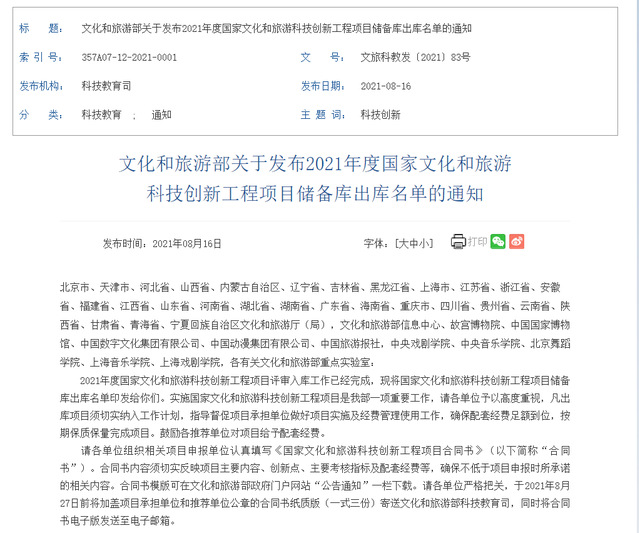 1.文化和旅游部办公厅关于开展2021年度国家文化和旅游科技创新工程项目推荐工作的通知