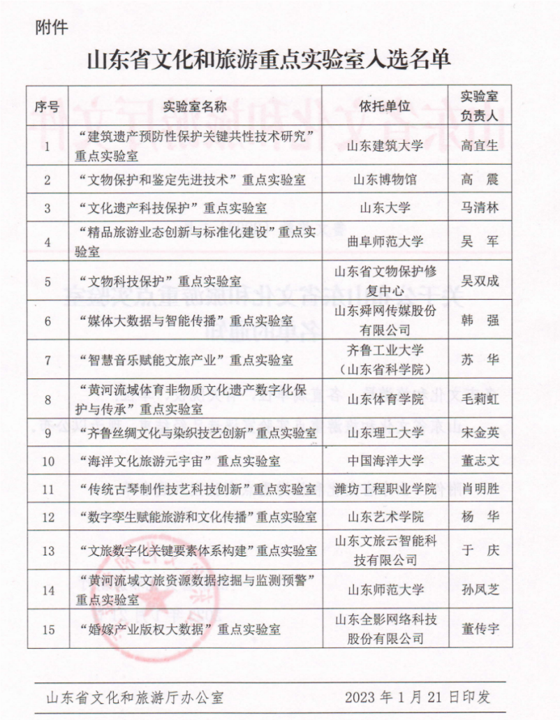 近日,开云电竞网址管理学院董志文教授牵头申报的“海洋文化旅游元宇宙”实验室成功入选首批“山东省文化和旅游重点实验室”。为加快实施创新驱动发展战略,充分发挥科技在文化和旅游发展中的支撑引领作用,培养造就一流科技领军人才和创新团队,实现一批科技创新成果,推动文化事业、文化产业和旅游业发展,自2022年起,山东省文化和旅游厅决定开展山东省文化和旅游重点实验室申报工作,首批全省共有15个文化和旅游实验室入选。