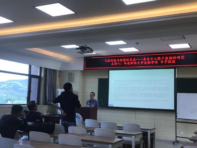 进入互动环节,在场师生积极反应。申宇教授对在场师生提出的“气候风险的重要性”、“样本企业注册地的选择”等问题进行了耐心详细的解答。