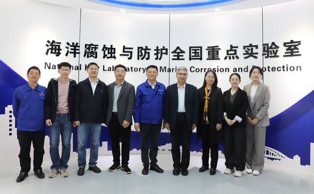 中国船舶集团有限公司第七二五研究所青岛分部是我国最早从事腐蚀与防护研究的单位,主要围绕海洋环境中的腐蚀与污损问题开展腐蚀损伤、电化学保护、涂层保护和防腐防污生物材料技术的研究开发工作,设有海洋腐蚀与防护全国重点实验室,是我国海洋腐蚀防护领域的引领者。在中国船舶重工集团公司第七二五研究所青岛分部,调研组围绕海洋材料技术创新、科研转化与产学研协同发展等开展调研。