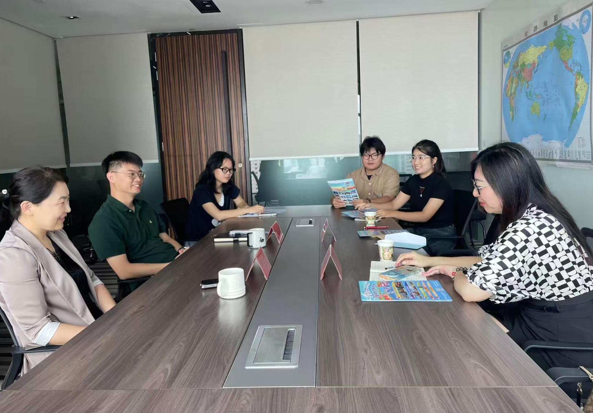 访企过程中,李文文总经理向海大师生一行系统介绍了青岛康辉的发展历程、业务布局、运营模式及行业竞争优势,重点分享了企业在研学旅游、康养旅游等新兴领域的创新成果。李文文特别强调:“旅游行业的发展离不开专业人才的支撑,青岛康辉始终把校企合作作为储备行业人才、建设旅游强企的重要举措,通过‘课堂理论+岗位实践’的双轨培养模式,帮助旅游专业学生快速熟悉行业规则、适应职场环境,实现从‘校园人’到‘职业人’的平稳过渡。”