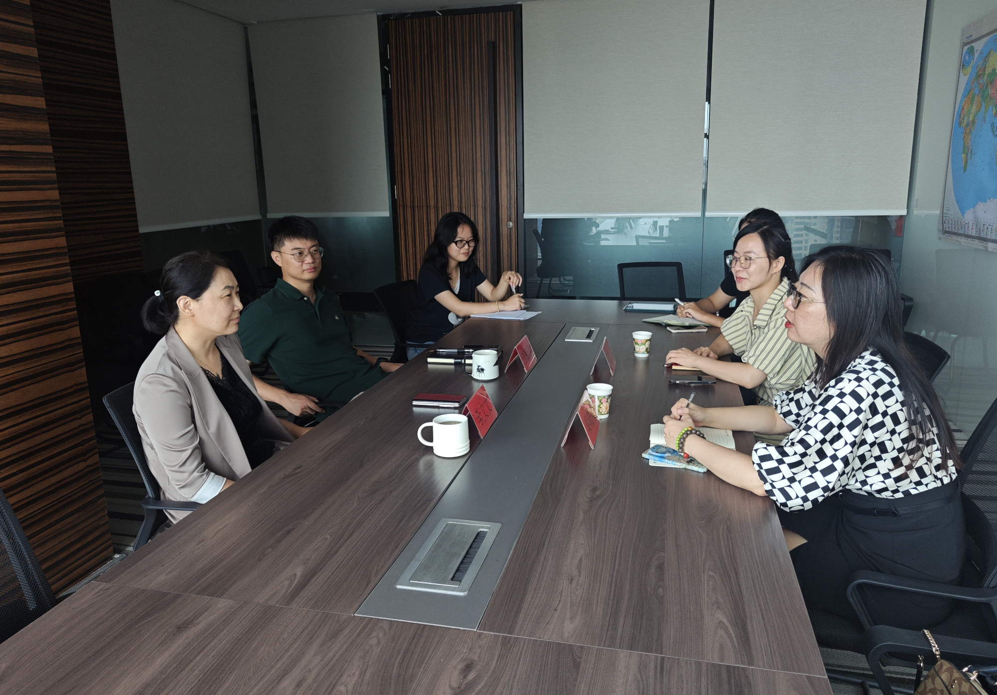 在与实习学生的座谈交流环节,秦晓楠老师和张宇芳老师细致询问了大家的实习进展、实际收获与遇到的困难。同学们积极分享实习体验,表示通过一线实践,不仅有效运用了课堂所学的理论知识,更在跨部门协作、突发问题处理等实务能力上取得明显进步,对旅游行业的实际运作有了更深入的理解。宋超同学谈到:“之前课堂上学的旅游产品开发偏重理论框架,实际参与项目后,才真正体会到要综合考虑景区资源、交通接驳、游客安全等多重因素,这次实习让我获益匪浅。”