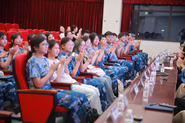 优秀校友代表的分享环节,中科密罗木科技有限公司董事长鞠世忠校友深情回忆了自己在海大的学习与生活时光,他坦言,大学期间的专业课程学习与实践活动,为自己后续的职业发展与创业之路奠定了坚实基础。结合自身创业经历,他鼓励新生们:“要坚定专业自信,相信市场营销专业的价值与潜力。在学习过程中,多思考、多尝试,主动积累行业经验,培养解决实际问题的能力,为未来的职业发展做好充分准备。” 青岛潮玩季商业有限公司总经理赵青校友同样分享了自己的创业历程,他着重强调了学习的重要性:“专业基础是未来发展的‘基石’,只有打牢基础,才能在面对复杂的市场环境时从容应对。希望同学们珍惜大学时光,认真学好每一门课程,不断提升自身专业素养。” 中国移动青岛分公司副总经理王宁与崂山分公司副总经理曹东东校友则结合自身职业发展道路,分享了从基层岗位做起、逐步成长的经历,他们勉励新生们:“刚步入职场时,不要急于求成,要脚踏实地从点滴做起,在基层岗位中积累经验、磨练意志,逐步提升自己的业务能力与综合素养,为未来的职业晋升打下坚实基础。”