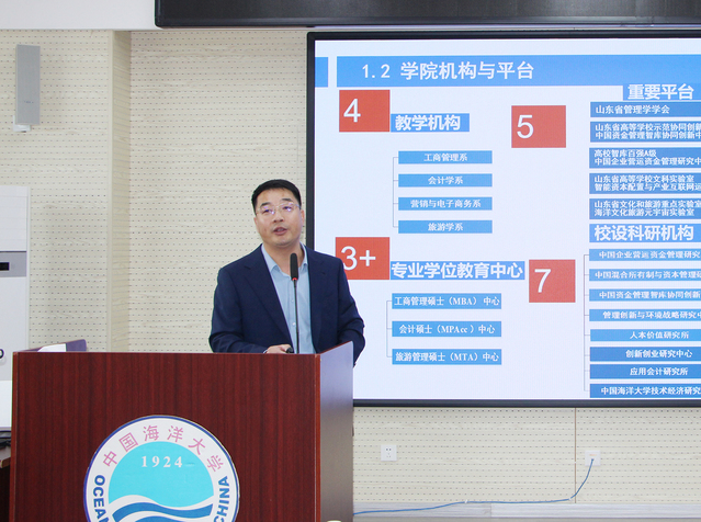 随后,全体人员共同观看了管理学院最新宣传片。画面中,学院的发展历程、雄厚的师资力量、丰硕的办学成果一一呈现,让校友们重温了在校时的青春记忆,也深刻感受到了母校如今的综合实力。宣传片播放结束后,管理学院副院长李志刚教授系统介绍了学院的整体发展现状、近年来在科研创新、人才培养、国际合作等方面的建设成效,以及未来在学科交叉、产教融合等领域的顶层设计。