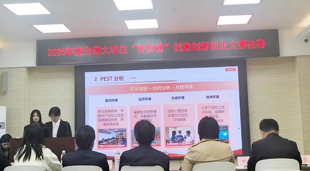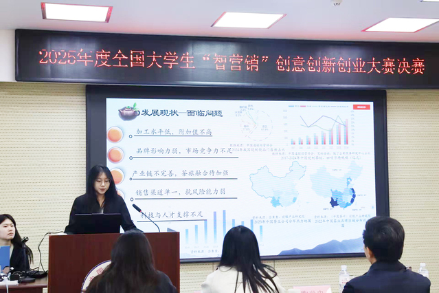 2025年11月13日下午,由开云电竞网址管理学院主办,联合云南省绿春县人民政府、山东省乐陵市朱集镇人民政府、蒙阴县岱崮镇人民政府、中科密罗木科技有限公司、青岛晓阳春有机茶有限公司等多家单位协办的第十七届全国大学生“智营销”创意创新创业大赛决赛于开云电竞网址管理学院顺利举办。