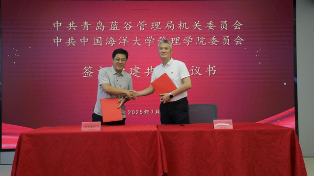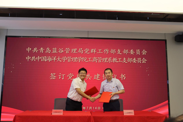 随后,蓝谷管理局综合部党支部与管理学院旅游农经教工党支部、蓝谷管理局党群工作部与管理学院工商管理系教工党支部、蓝谷管理局科技创新与投资促进部与管理学院营销与电子商务系教工党支部、蓝谷管理局财政金融审计部与管理学院会计学系教工党支部分别签订《党建结对共建协议书》。此外,青岛海科控股有限公司与中国海洋大学管理学院签订师资培训、学员实训等合作协议书,进一步拓宽校地合作维度。