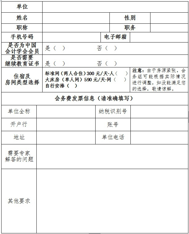 请在汇款时注明“中国会计学会专家论坛+姓名”。