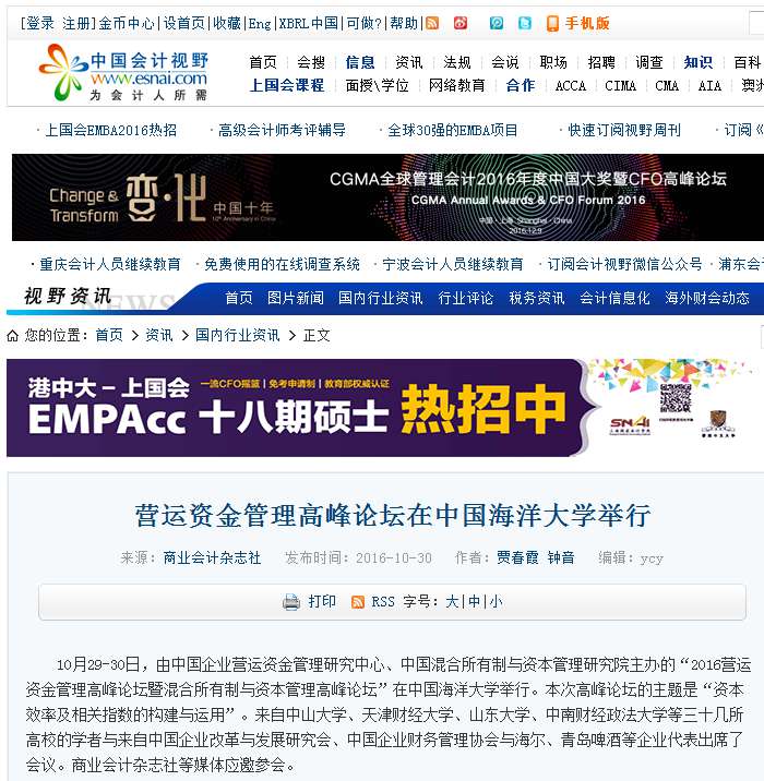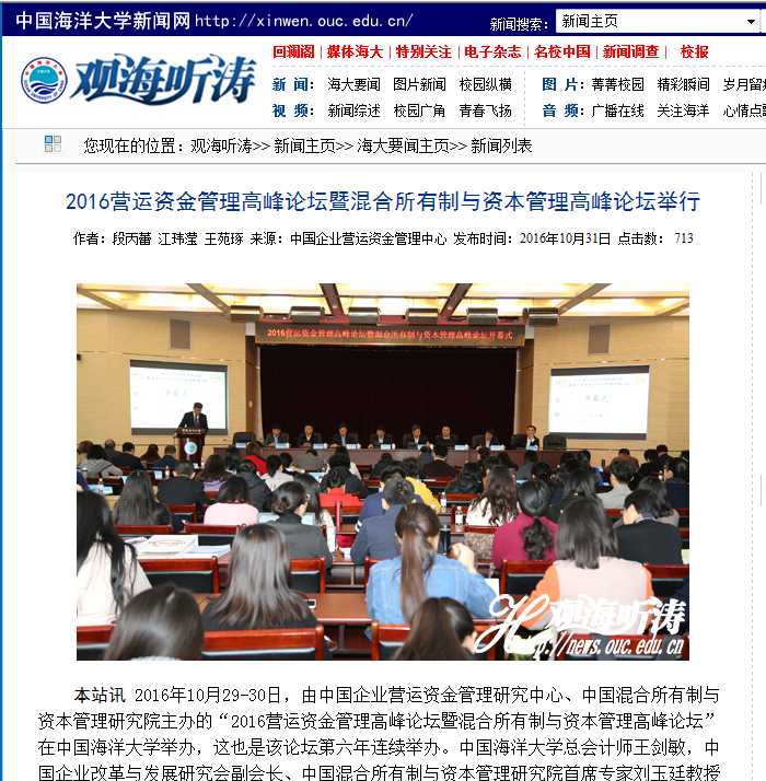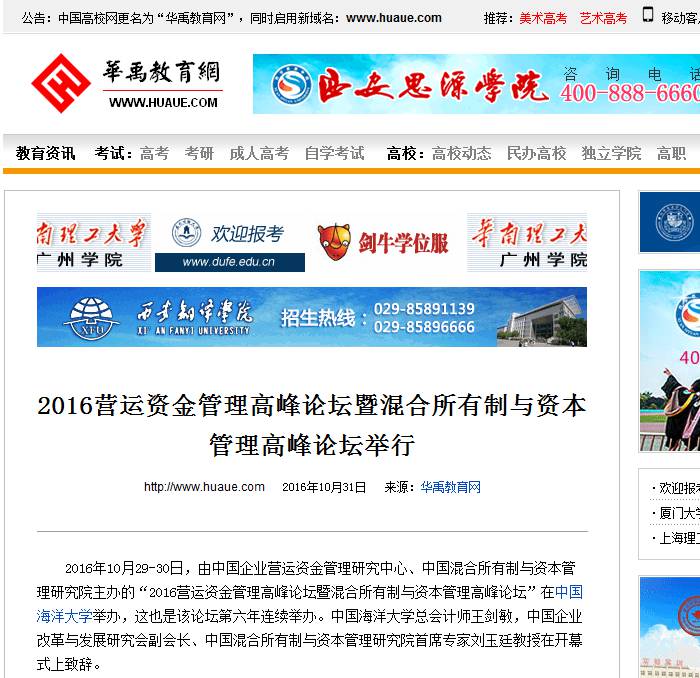 2016营运资金管理高峰论坛暨混合所有制与资本管理高峰论坛部分新闻报道转载