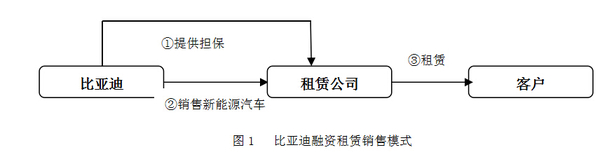 高技术含量的新能源环保产品的价格一般较高,比亚迪为提高产品销售量,采取了融资租赁、成立金融公司、担保贷款等提高客户支付能力的金融创新模式。比亚迪与第三方租赁公司合作,将产品销售给租赁公司,并为客户提供担保使客户可以租赁的方式使用购置成本较高的资产,具体流程如图1所示。通过与租赁公司的合作,既可以加快比亚迪资金的回笼,提高营运资金的周转效率,减少资金投入,降低公司运行风险,还可以满足客户的消费需求,实现共赢。