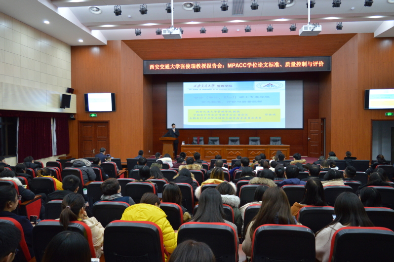 本站讯,12月12日,在管理学院学术报告厅335如期迎来了一场知识盛宴,令广大师生在寒冷的初冬,收获满满。来自西安交通大学的张俊瑞教授进行了《MPAcc学位论文标准、质量控制与评价》的讲座。