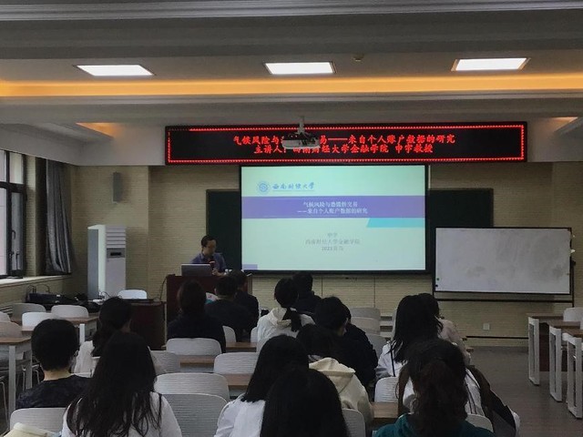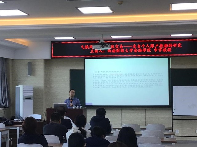 进入互动环节,在场师生积极反应。申宇教授对在场师生提出的“气候风险的重要性”、“样本企业注册地的选择”等问题进行了耐心详细的解答。