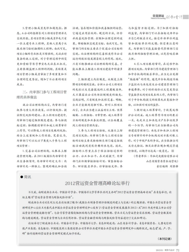 《财务与会计》杂志2013年第1期:“2012营运资金管理高峰论坛举行”