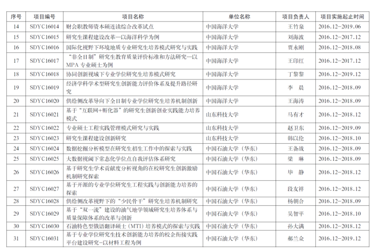 山东省研究生教育创新计划建设项目