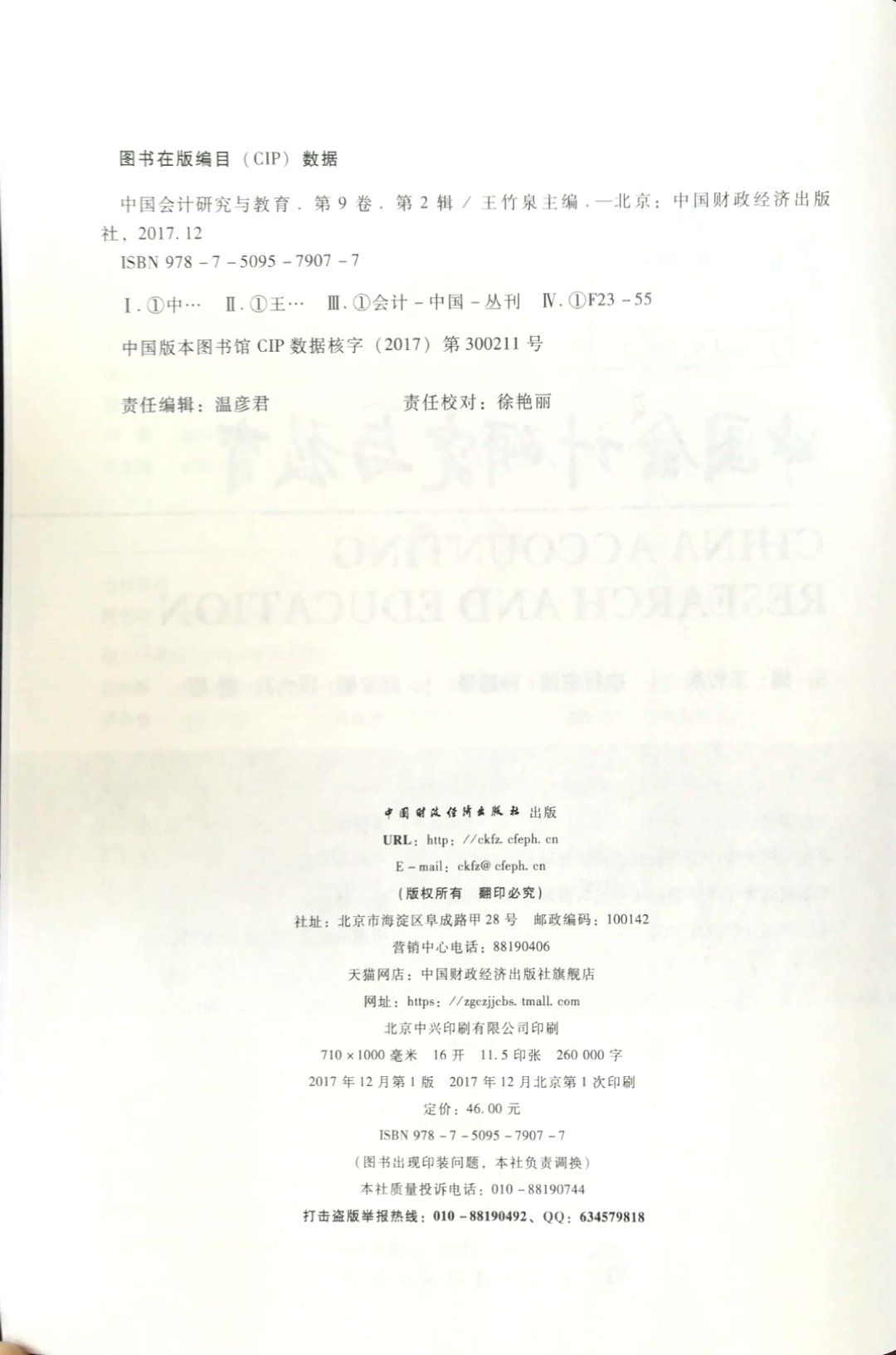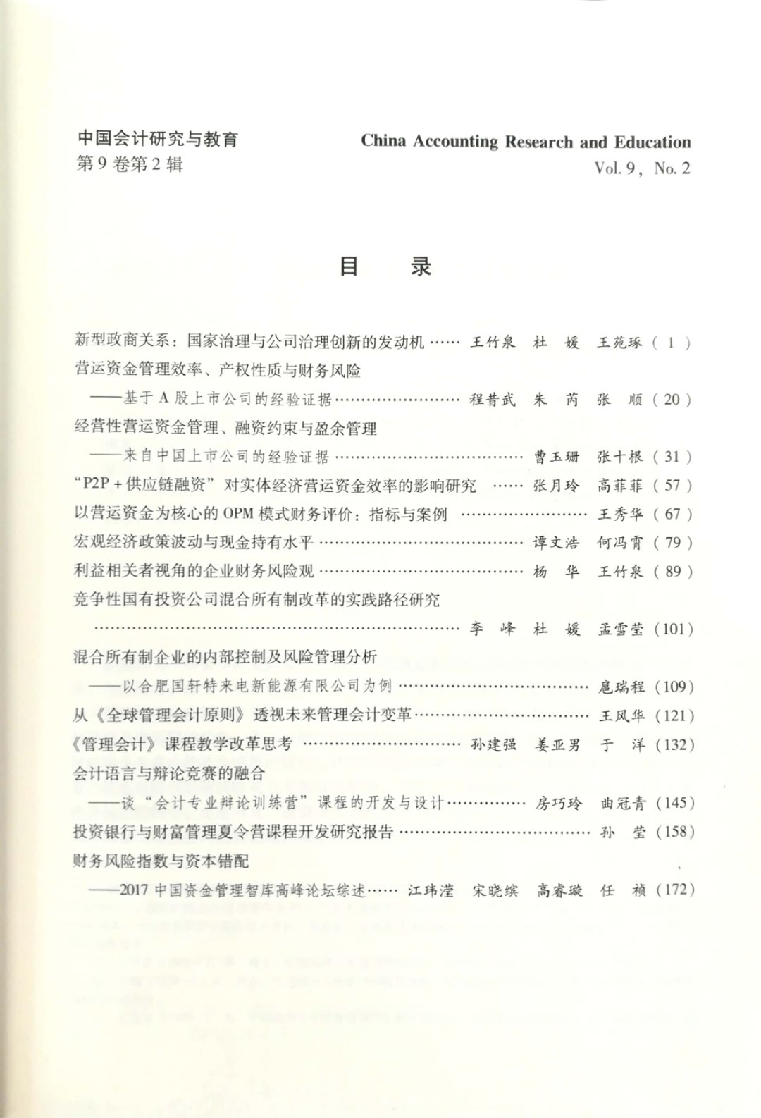 《中国会计研究与教育》第9卷第2辑