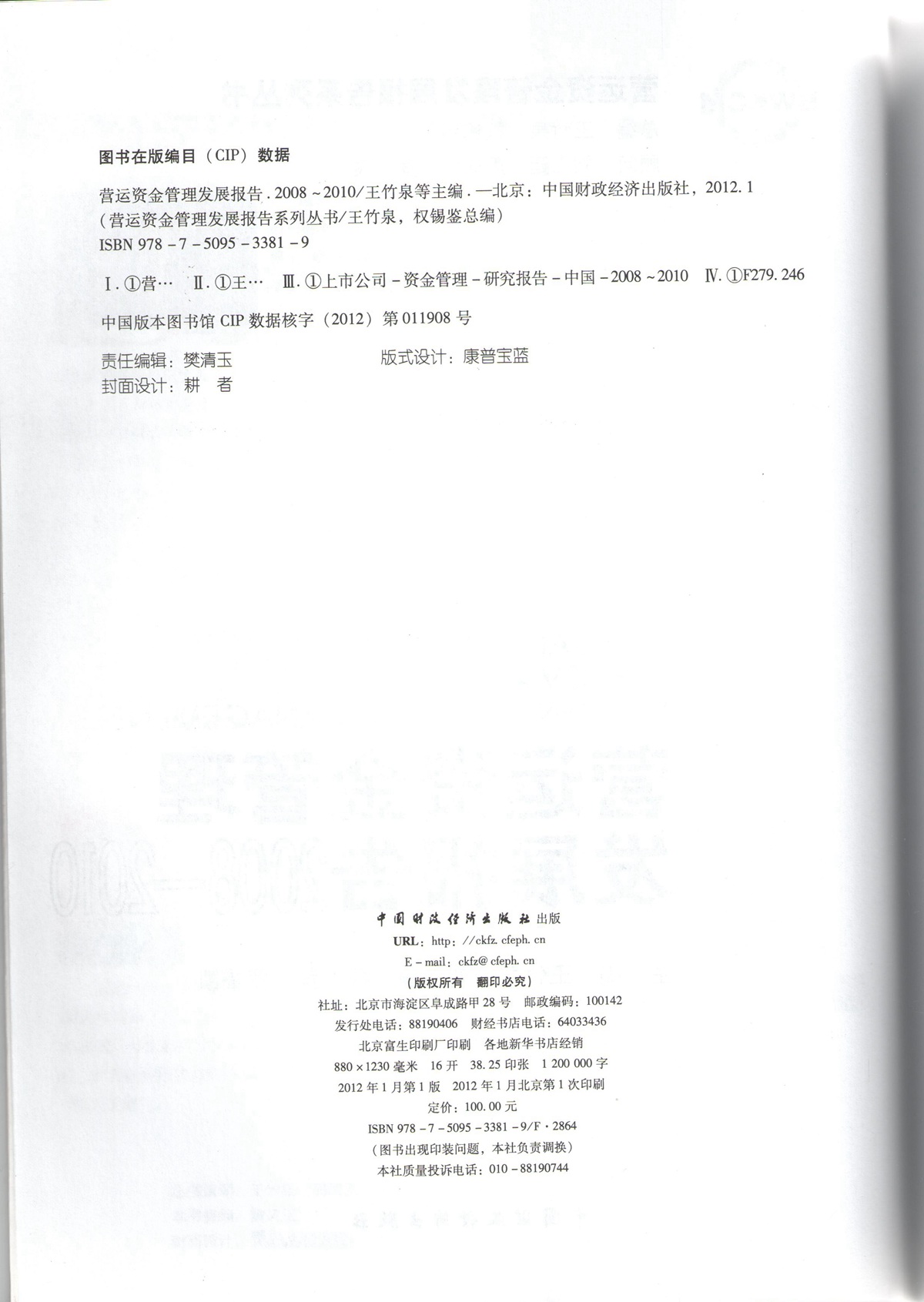 王竹泉、孙建强等,《营运资金管理发展报告2008-2010》,版权页
