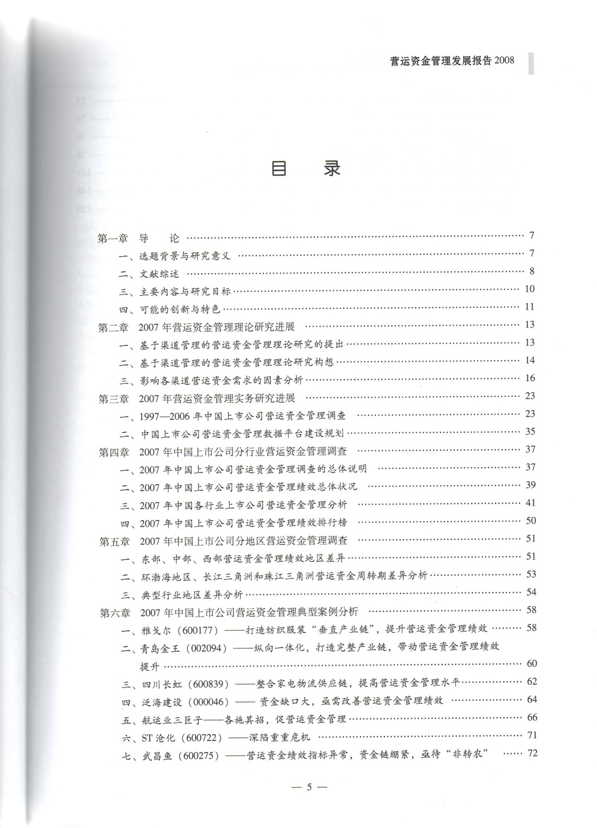 王竹泉、孙建强等,《营运资金管理发展报告2008-2010》,目录