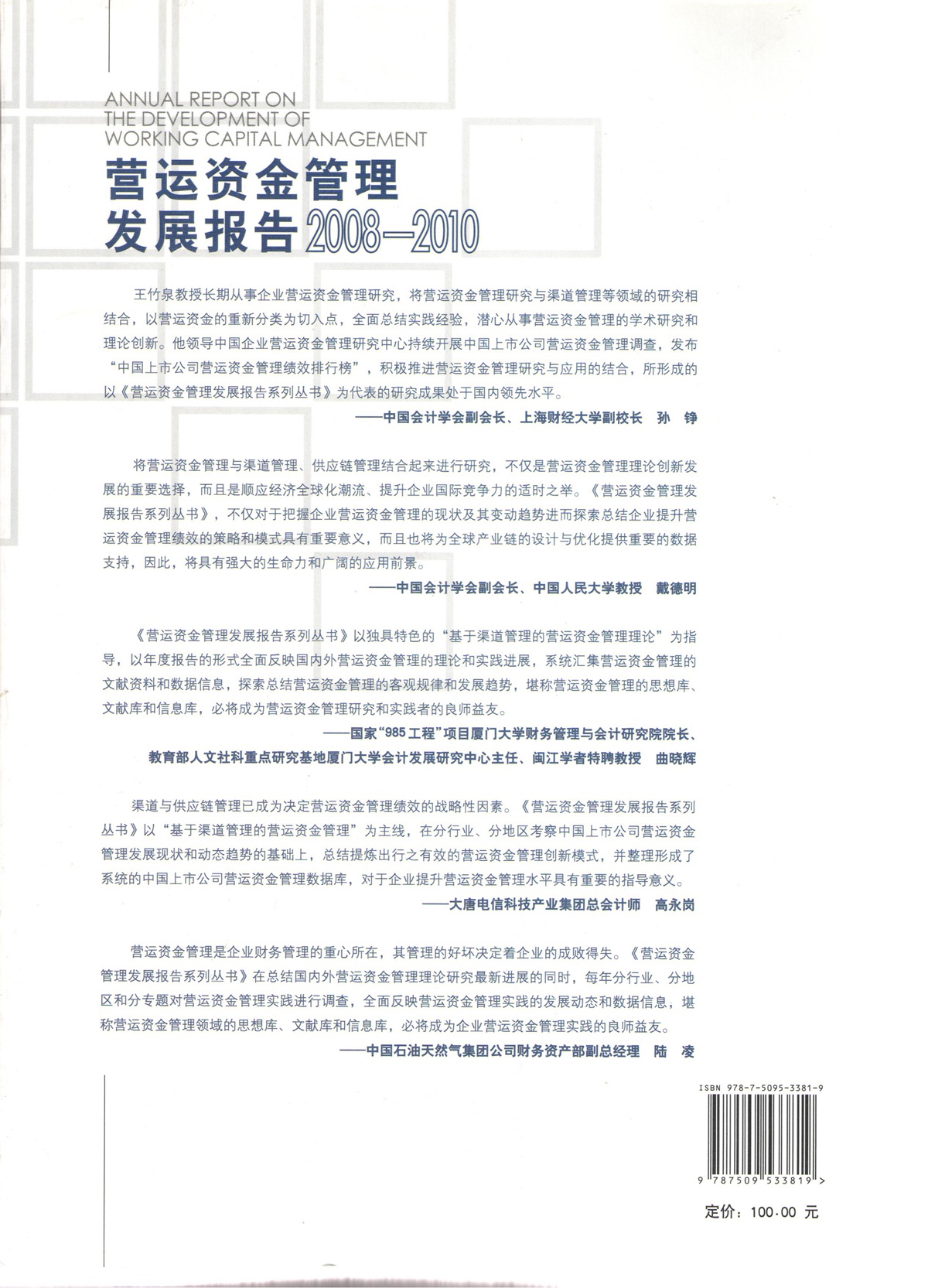 王竹泉、孙建强等,《营运资金管理发展报告2008-2010》,封底