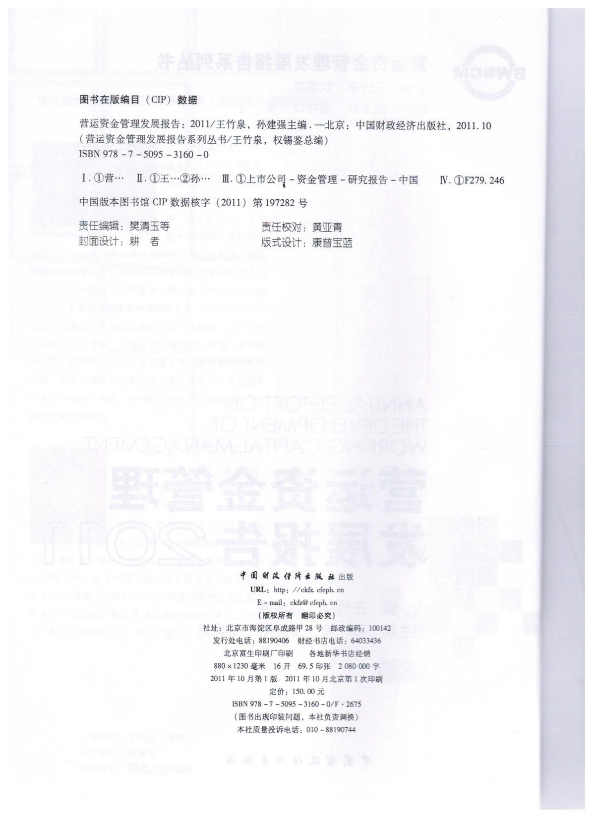 王竹泉、孙建强等,《营运资金管理发展报告2011》,版权页
