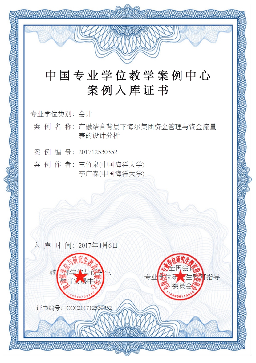 中国专业学位教学案例中心入库案例:产融结合背景下海尔集团资金管理与资金流量表的设计分析