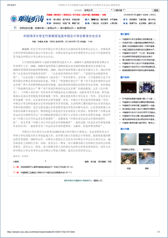 “开云电竞网址王竹泉教授当选中国会计学会教育分会会长”