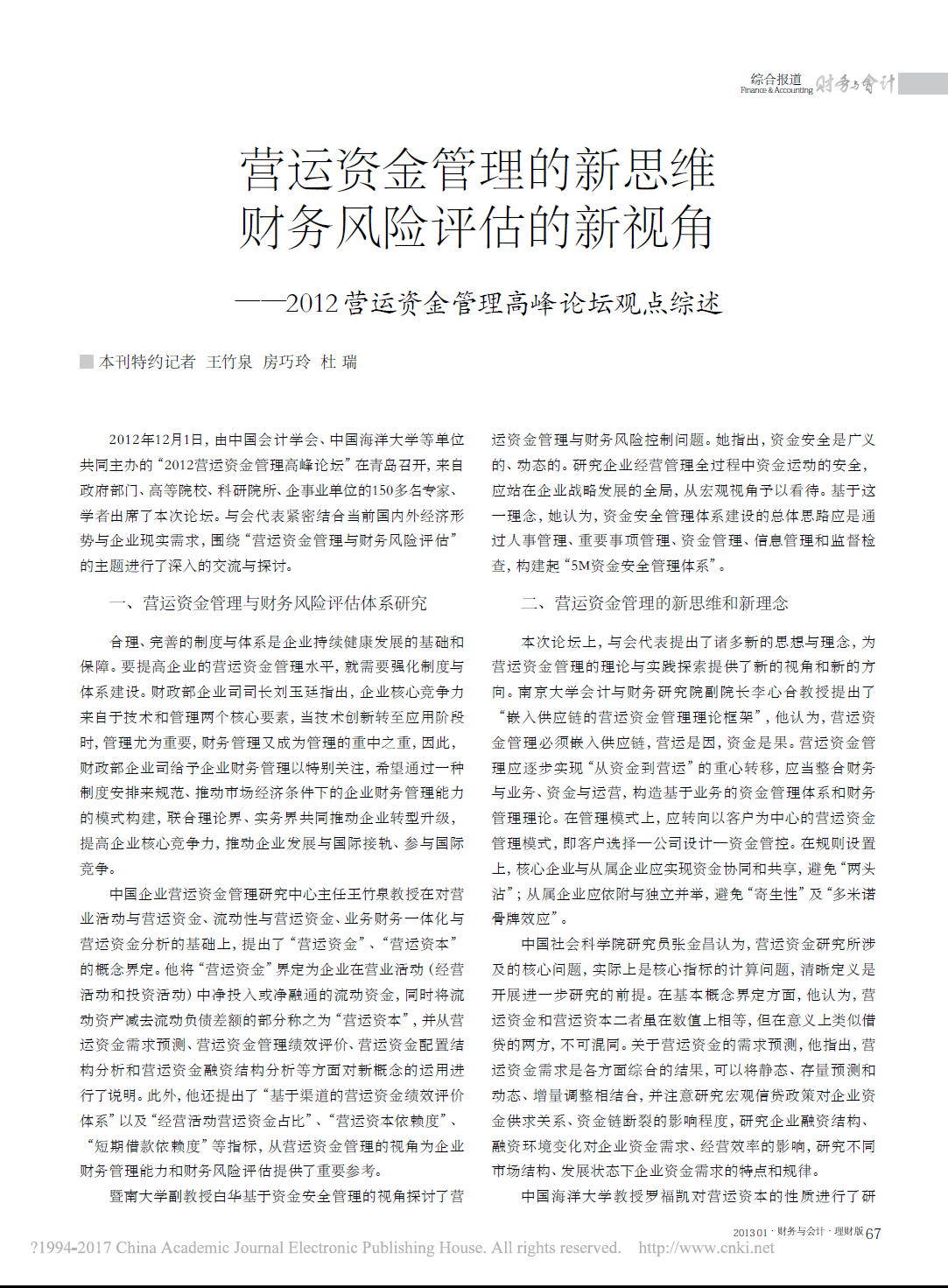 图5 营运资金管理高峰论坛祝主要报告一览表