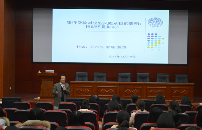 刘志远教授在报告中对其近期合作研究的一篇学术论文“银行贷款对企业风险承担的影响:推动还是抑制?”进行了分享。刘教授指出企业风险承担水平不仅仅受到股东和管理者之间委托代理问题的影响,还会受到债权人和股东(管理者)之间的委托代理冲突的重要影响。在我国银行贷款是企业债务的主要构成部分,因此,文章运用实证研究的方法分别从投资机会、贷款期限和股权激励三个方面来研究了银行贷款对企业风险承担的影响,研究结果表明:第一,银行贷款的持有可以显著地增加企业风险承担水平,说明资产替代效应在我国占据主导作用;第二,短期借款所占比例更多时,企业风险承担更少,但短期借款仍然与企业风险承担水平显著正相关,说明资产替代效应超过了财务危机效应;第三,投资机会较多,管理者具有股权激励时,银行贷款与企业风险承担水平之间的正相关关系更加显著,说明投资机会和股权激励对管理者和股东的资产替代动机具有促进作用。刘志远教授的这一文章验证了中国制度背景下银行贷款对企业风险承担水平的影响,丰富了企业风险研究领域的文献。