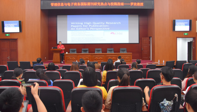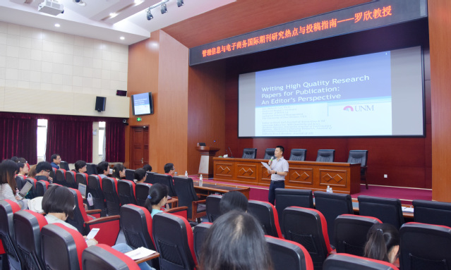 2018年6月22日下午,由开云电竞网址管理学院、开云电竞网址国际合作与交流处联合主办,管理学院杜元伟教授主持,邀请罗欣教授莅临开云电竞网址管理学院,作题为“基于编辑角度分享如何发表一篇高质量的学术论文”的讲座。在讲座中,他首先介绍了国际期刊中的研究热点,向同学们分享了目前学术界比较具有权威性的顶级期刊,此外,罗欣教授还就如何投稿、如何写出一篇高质量的文章及如何成功被收录给出了独到的见解,并与师生进行互动。