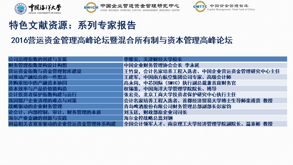 2016营运资金管理高峰论坛暨混合所有制与资本管理高峰论坛系列专家讲座