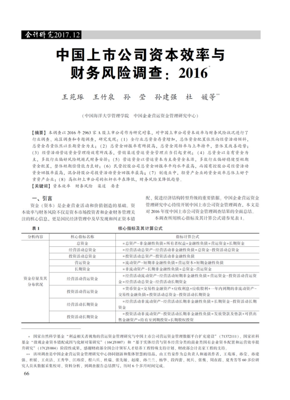 王苑琢,王竹泉、孙莹等,中国上市公司营运资金管理调查: