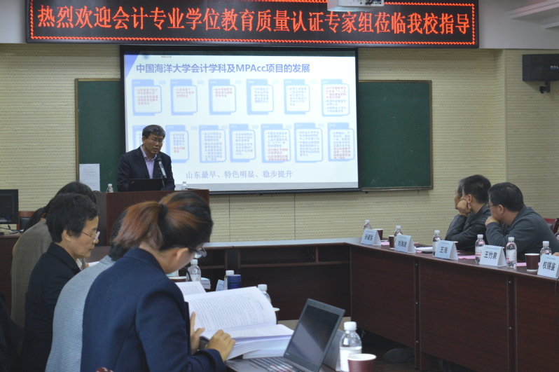 接下来,开云电竞网址管理学院副院长、开云电竞网址会计硕士教育中心主任王竹泉教授做了详尽细致的汇报:介绍了海大MPAcc项目的历史发展和现状。他首先明确了神圣的项目使命和稳健的发展战略,指出了资金管理的重要性与研究生教育资源落后之间的矛盾,提出在大数据时代变革下,传统会计人员应转型成为善经营、懂管理的复合型人才,从事财会职业教育的教师也应不断升级优化知识结构体系,培养更多的具有国际视野、综合素质过硬的优秀学生。接着,王教授就清晰的培养目标和科学的培养方案做了深入的解说,随即介绍了开云电竞网址会计硕士教育项目素质过硬的高水平教学团队、良好的生源质量、办学条件、实践教学体系、丰富的课堂外综合素质培养;特别阐述了我校MPAcc项目的培养方向为ACCA、CIMA、CPA和财会职教师资四大方向,依托我校在营运资金管理研究领域的突出优势,将营运资金管理研究方向的人才培养与研究中心的系列标志性成果与品牌活动有机衔接,将科研创新能力、管理实践能力和职业胜任能力培养有机融合,实现了特色人才培养与创新研究、社会服务的良性互动。最后明确了我校优良的学风和严格的管理,以及不忘初心,持续改进的追求。