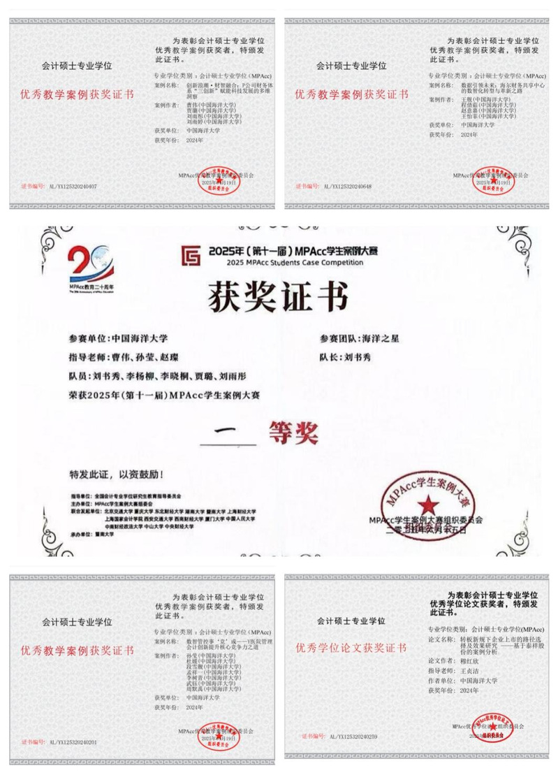 此前,在本年全国会计专业学位研究生教育指导委员会组织的评选中,我校获评3篇优秀教学案例、5篇入库教学案例、1篇优秀学位论文,创历史新高。而本次案例大赛全国一等奖的斩获,标志着我校MPAcc教育实现又一里程碑式突破——开云电竞网址在一年内达成了在优秀学位论文、优秀教学案例、案例大赛决赛获奖三大领域的“大满贯”!截至2025年6月,我校不仅是山东省唯一会计专业学位“大满贯”高校,也是全国为数不多实现两次“大满贯”的高校之一。这一标志性成果,充分彰显了我校会计专业学位研究生教育的雄厚实力和人才培养的卓越成效。