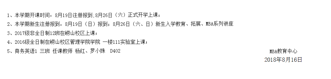 2018学年第1学期课程表