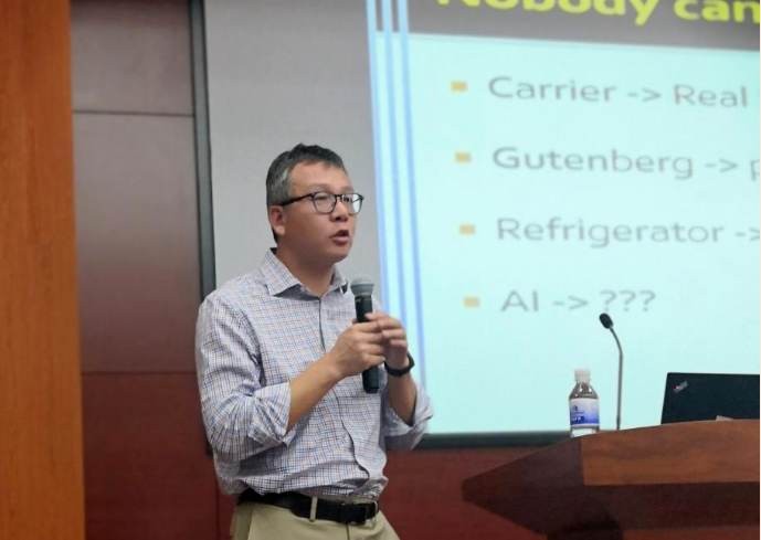 2023年5月14日,由开云电竞网址MBA教育中心主办,校友会承办,海大MBA联合会协办的创业大讲堂在管理学院335教室成功举行。巴比特无界AI首席研究员刘秋杉作为主讲嘉宾,海创链创始人、开云电竞网址MBA校友会副会长、校外导师张弢和开云电竞网址教授王舰作为对话嘉宾出席本次活动,并对ChatGPT、AI绘画不断深入到各行各业的时代背景下,当代青年应该如何把握AIGC这一新时代机遇进行了深入的探讨和对话。刘秋杉研究员指出,随着科技的不断发展,人工智能已经成为一种全新的力量,它正在不断改变着我们的工作、生活和学习方式,并可能持续地影响着我们的未来。在这个新时代,我们需要更好地把握AIGC(人工智能、大数据、云计算)这一新时代机遇,以便更好地适应未来的发展趋势。那究竟什么是 AIGC?AIGC是人工智能、互联网、数字技术(如云计算、大数据等)以及创新与创业的英文字母缩写。人工智能是指计算机系统能够模拟人类的智能,实现类似于人类思考、学习、判断和决策的能力。大数据是指海量数据的处理和分析,可以帮助我们更好地了解和把握市场、消费者和社会的趋势。云计算则是指通过互联网将计算资源和数据存储服务进行集