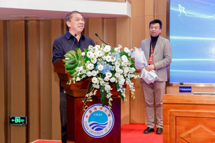 主论坛在嘉宾们的精彩分享与现场热烈的交流互动后渐近尾声,随后迎来了一个特殊时刻。MBA教育作为开云电竞网址教育的重要组成部分,一直以打造国内一流、世界知名的MBA项目为目标。自2004年首届MBA新生入学起,已走过了意义非凡的二十年辉煌历程。权锡鉴院长作为开云电竞网址MBA教育中心的主要创建者,自2004年开始担任MBA教育中心主任以来,深谋远虑、行稳致远,为海大MBA教育从起步到壮大,做出了不可磨灭的卓越贡献。姜忠辉代表海大MBA全体师生向权院长献上了鲜花,致以最诚挚、最崇高的敬意。